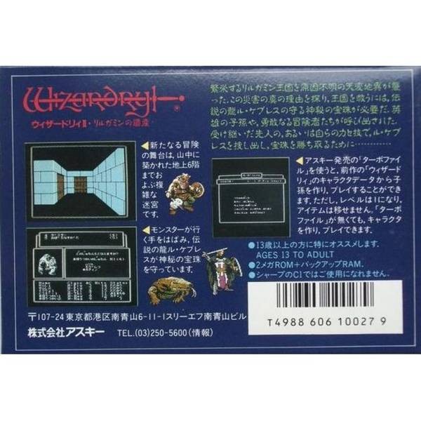 於 1989 年在紅白機(Famicom)上推出的《巫術2:里魯加敏的遺產》(Wizardry II: Legacy of Llylgamyn),在整個《巫術系列》歷史中,存在著一個相當耐人尋味的「順序錯位」。原本在 PC 平台上,第二部作品應是《鑽石騎士》,但在家用主機移植過程中,負責發行的 ASCII 選擇將 PC 的第三作《里魯加敏的遺產》重新定位為 FC 的第二代推出,讓主機玩家實際上是「跳著順序」體驗系列進化。