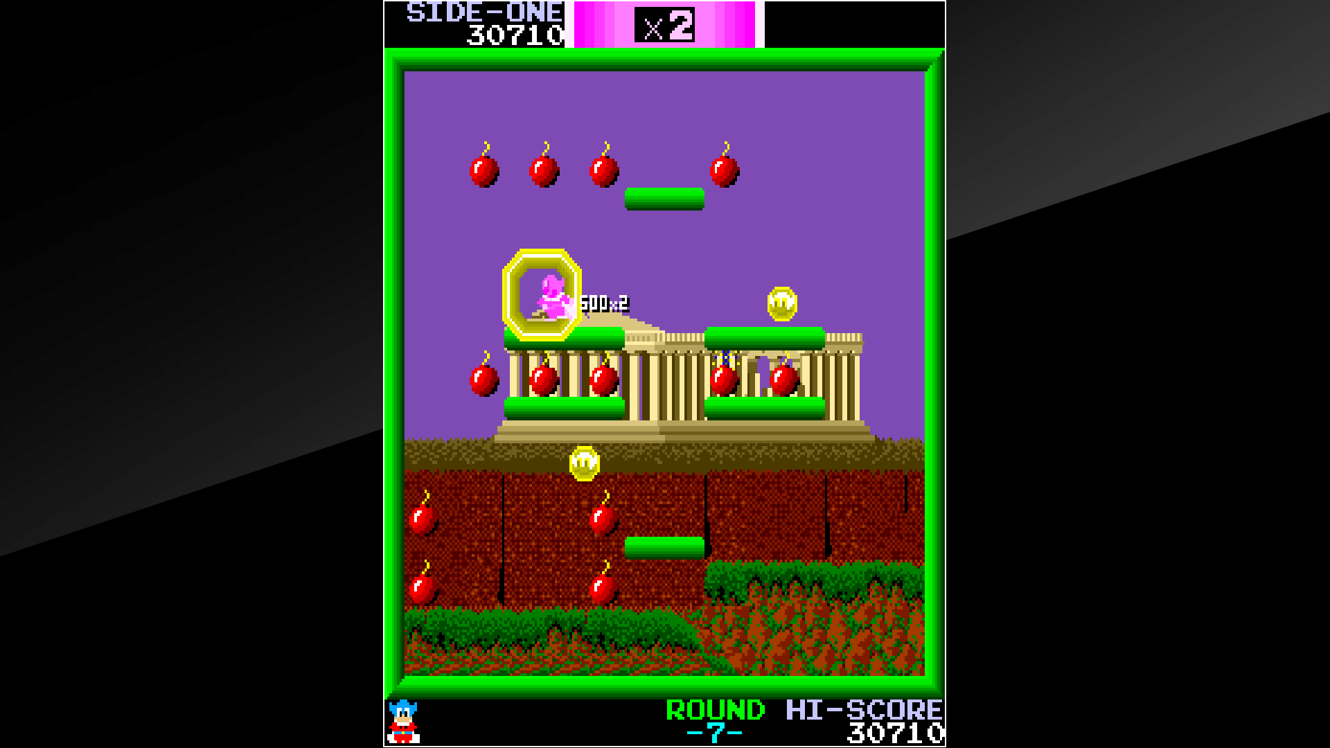During bomb collection, various items may appear depending on player performance. These include score multipliers, extra lives, and additional credits. Accumulating enough bombs will trigger the appearance of the “P” icon, which transforms all enemies into collectible coins for a short period—one of the most exhilarating moments of the entire game.