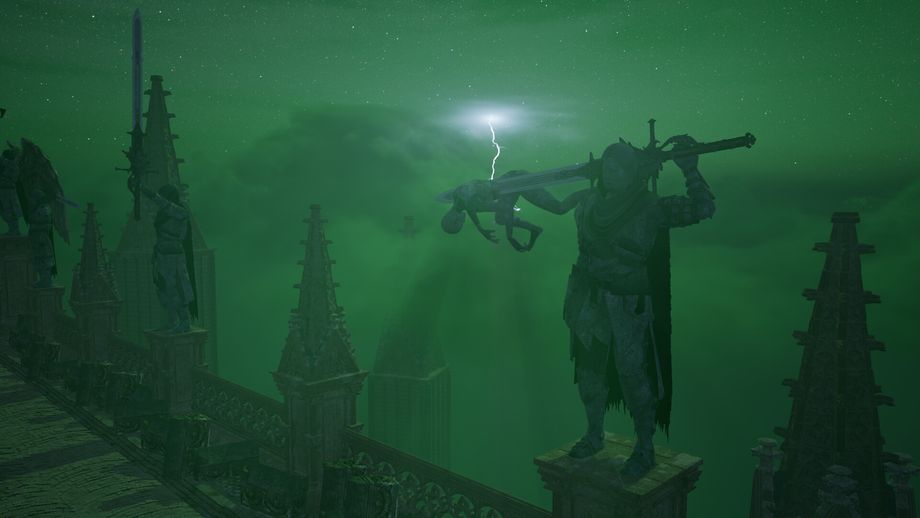 In terms of narrative, the game depicts a world completely overrun by evil forces. The entire world has declared war on God, prompting divine retribution. Players take on the role of a chosen Crusader—the emissary of God—tasked with punishing the wicked and annihilating the cult that controls the world. Alongside a loyal dragon companion, players wield holy powers and arcane abilities to confront relentless enemies and formidable bosses. The setting spans vast, awe-inspiring locations, from exiled planets in a cosmic star system to fallen civilizations, Gothic cathedrals, and towering spires, creating an oppressive yet epic visual tone that amplifies every battle.