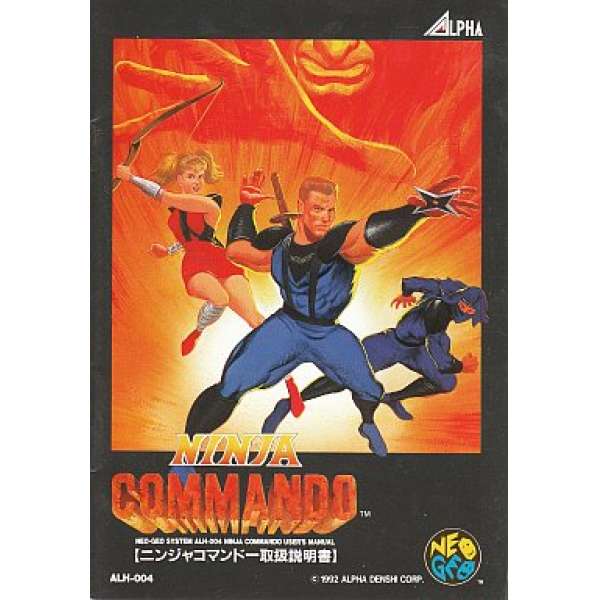 Released in 1992 on the Neo Geo arcade board (MVS) and home console (AES), Ninja Commando / ニンジャ・コマンドー was developed by ADK and published by SNK. It is a vertically scrolling action shooter and serves as the final installment of Neo Geo’s early "Ninja Trilogy" (following Magical Ninja and Ninja Combat). Ninja Commando broke away from the conventions of traditional ninja games, transforming the genre into a high-octane, time-spanning shooting battle. With its exaggerated character designs, dazzling ninjutsu techniques, and densely packed enemy bullet patterns, it became one of the most visually striking action games in 1990s arcades.