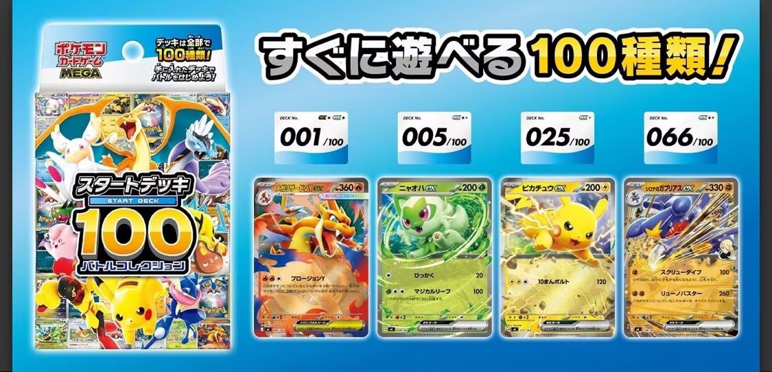 TCG The Start Deck 100 Battle Collection (ポケモンカードゲーム MEGA スタートデッキ100 バトルコレクション) is one of the most talked-about entry-level products in the Pokémon Trading Card Game lineup, widely regarded as a standout release that successfully combines beginner accessibility with the excitement of collectible surprises. The product was officially released in Japan on December 19, 2025, followed by a Traditional Chinese edition on January 9, 2026, building upon the original “Start Deck 100” concept introduced in 2022 while significantly expanding both its scale and depth as a collectible series.