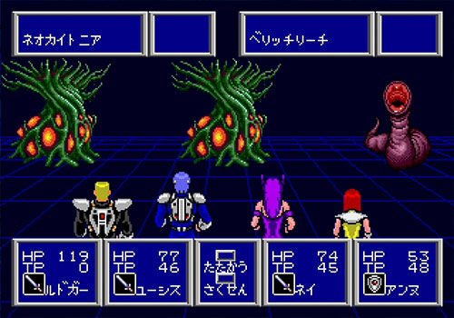 Released in Japan on March 21, 1989, Phantasy Star II: The End of the Lost Age (ファンタシースターⅡ:還らざる時の終わりに / Phantasy Star II) launched in North America and Europe the following year. A Japanese remake was released for the PS2 in 2005. Phantasy Star II was the first game to use a 6-megabit cartridge—then the largest capacity available for home consoles. Continuing the story of the first game: Alis and her companions defeated the evil Lassic and saved the Algol system. A thousand years have passed since Alis ascended the throne. By AW 1284, the once-desert world of Mota has been transformed into a green, habitable planet thanks to the Mother Brain system.