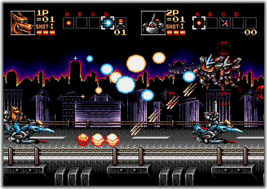 On Christmas Eve, A.D. 2641, a mysterious intrusion into the military’s automated defense system causes unmanned combat robots to rampage through the city. The Hard Corps—Ray, Sheena, Brad Fang, and Browny—are deployed to suppress the chaos. What appears to be a simple emergency soon reveals itself to be the beginning of a far larger conspiracy.