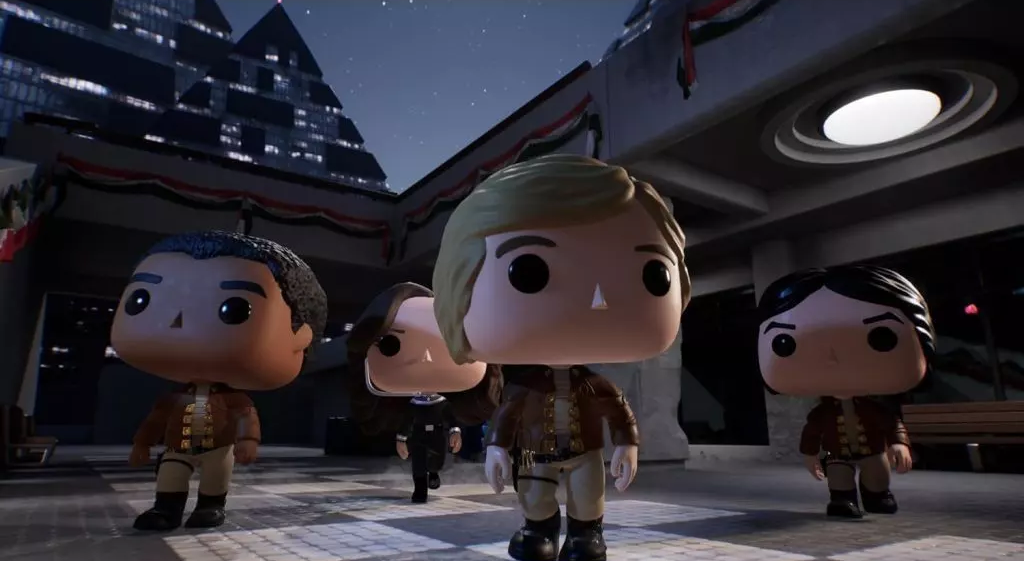 劇情方面,並沒有固定的單一故事線,而是以“跨界冒險”為主軸,在不同的經典世界間穿梭。每個關卡都受到著名影視作品的啟發,如《侏羅紀世界》、《回到未來》、《大白鯊》、《極地詭變》、《鬼娃恰吉》、《星際大爭霸》、《終棘警探》、《佛萊迪餐館之五夜驚魂》等。將重溫這些作品中的經典場景與瞬間,同時在Funko Pop風格的可愛造型中體驗動作與解謎的樂趣。每個世界不僅有獨特的視覺風格,還融入遊戲特有的幽默元素,讓熟悉的角色與場景煥發新鮮感。