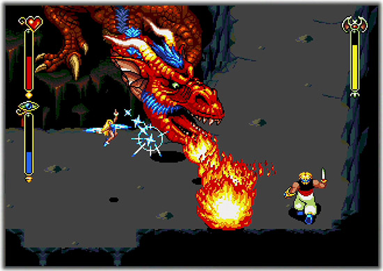 操作手感在當時極具突破性,採取類似《怒之鐵拳》的動作戰鬥節奏,又結合《薩爾達傳說》式的地圖探索與解謎配置,使遊戲在動作性與RPG感之間取得高水平平衡。面對的敵人種類繁多,包括蛇類、巨鼠、重甲武士、魔物與大型頭目,透過跳斬、連段、投擲與精靈能力,可以用多種方式擊敗對手,形成極具爽快感的戰鬥節奏。