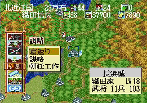 戦国時代を描いた、ゲームアーツの歴史シミュレーションゲームです。総勢千二百名もの武将が登場します。1555年の「群雄割拠」、「天下布武」、「本能寺炎上」、1600年の「関ケ原」の4種の中からシナリオと大名を選び、全国統一を目指します。
