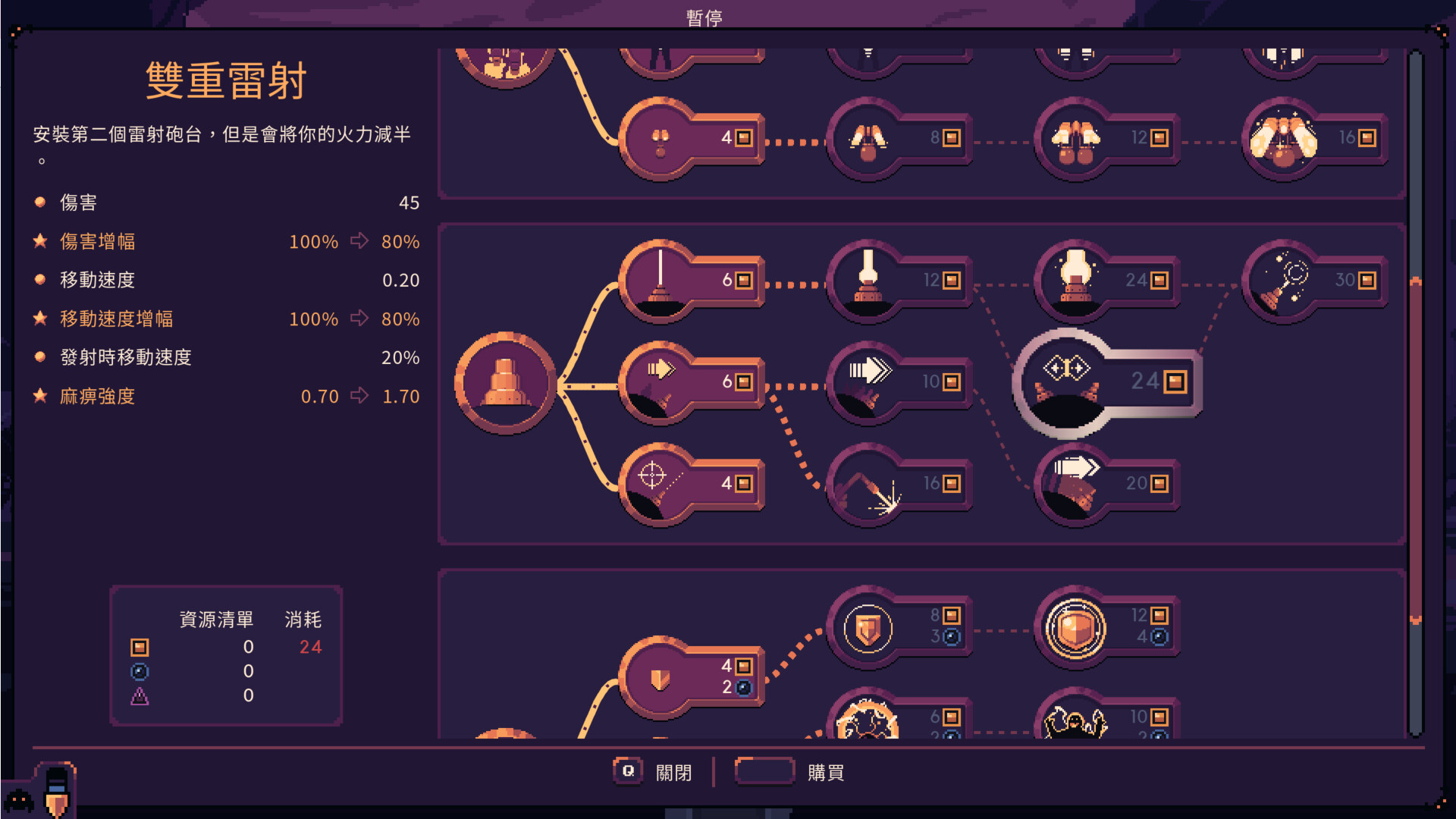 成長系統非常明確而充滿策略深度。透過挖掘獲得的資源,能逐步解鎖影響深遠的升級,如更尖銳的鑽頭、更快速的載物速度、更耐久的穹頂、武器強化、怪物距離雷達等,每一個選擇都會重塑玩家當輪冒險的節奏。可以打造高速挖掘流、全面防禦流,甚至把重心放在科技裝置,例如讓雷射更快移動、讓寵物探測器協助尋找資源,或使用重力球清圖。