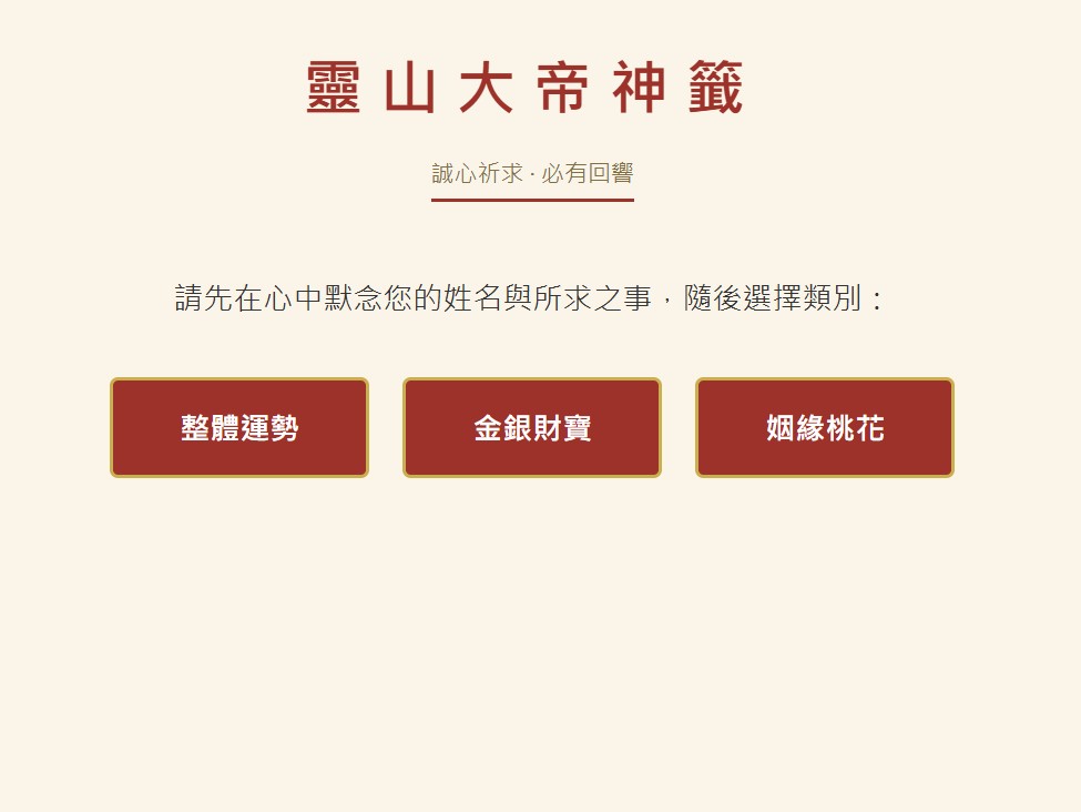 請先在心中默念您的姓名與所求之事,隨後選擇類別: