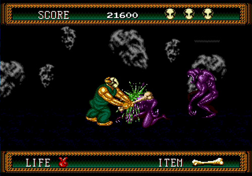 In 1992, Namco released Splatterhouse 2 for the Mega Drive/Genesis. As a home-console original sequel to the arcade title Splatterhouse, it continued the series’ brutal and oppressive atmosphere, intensifying its grotesque visuals and sound design while retaining the intuitive, side-scrolling action that defined the original. Players once again take on the role of the hulking Rick Taylor, battling through realms where the living world overlaps with hell itself. Step by step, Rick descends into forbidden depths, driven by a single purpose: to save his beloved Jennifer.