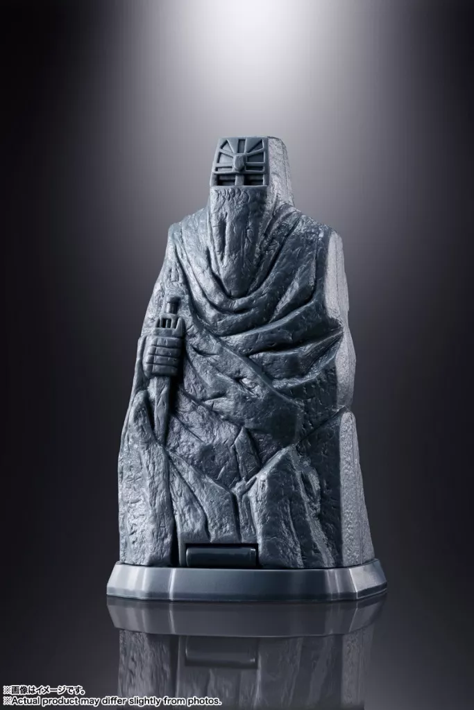 The set comes loaded with accessories, including GODMARZ’s signature weapon—the Mars Flash Sword, as well as the Six God Combination sword set, an exclusive CHOGOKIN 50th design. It also includes the Cosmo Crusher, a transformable space fighter that can separate and combine into three smaller crafts. The kit provides eight pairs of interchangeable hands, a display base, and the Myojin Reef, the stone-like structure that houses the Gaia unit. The overall presentation offers both mechanical depth and artistic display value.