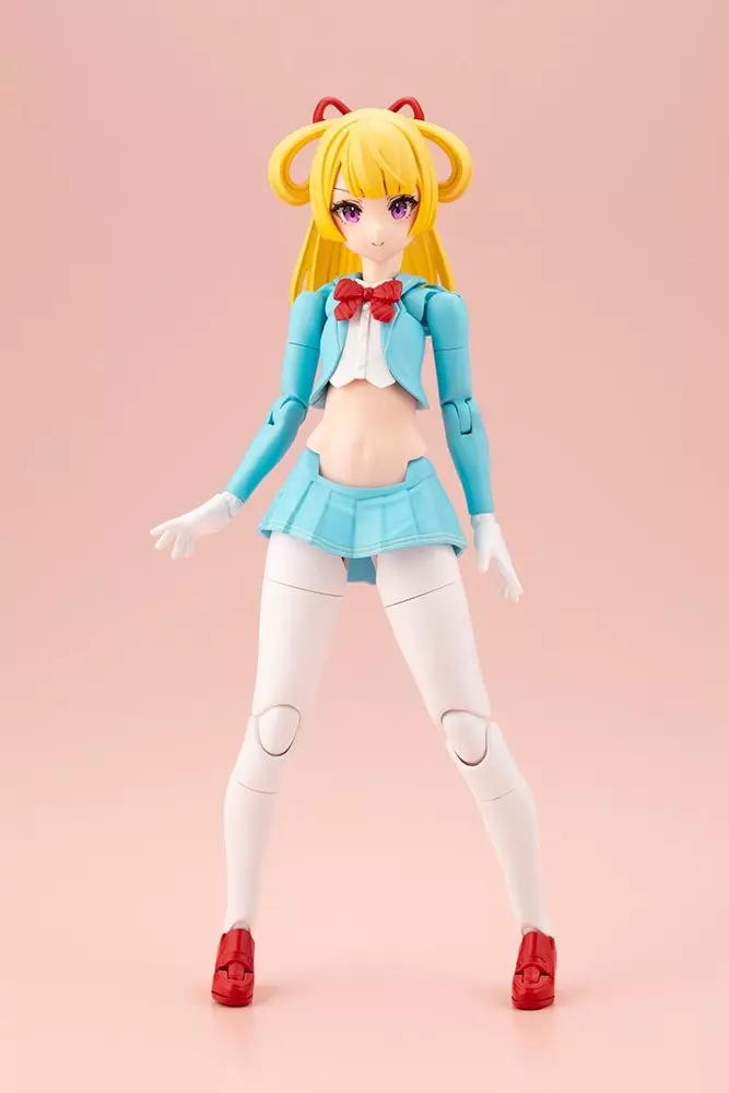 At the center of the collaboration is Buster Doll Knight Alice, a reimagined version of the “Buster Doll Knight” character. Alice features a refreshing sky blue and white color scheme, evoking both purity and futuristic energy. Her new design is built upon the Machineca Block2-M body, the latest evolution of the Megami Device internal frame. This upgraded structure provides improved articulation, easier assembly, and more natural proportions, making it ideal for both posing and display. Her facial expression has been newly painted to match the color theme, with pre-painted eyes and a subtle pink-tinted Skin Color B tone that gives her a soft, lifelike appearance.
