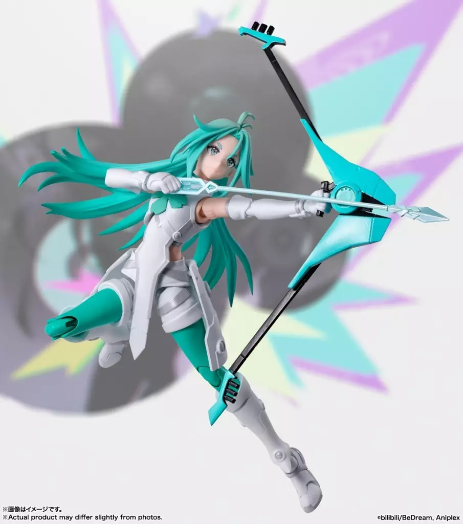 The figure stands approximately 145 mm tall and is made of PVC and ABS, featuring BANDAI’s renowned S.H.Figuarts engineering for dynamic poseability and screen-accurate proportions. Lucky Cyan’s sculpt captures her soft yet confident expression, with her trademark turquoise hair rendered in a subtle gradient finish that adds realism and depth. Her iconic Battle Guitar, a central part of her character, can seamlessly transform into a bow without replacing any parts—a clever recreation of her weapon from the show.
