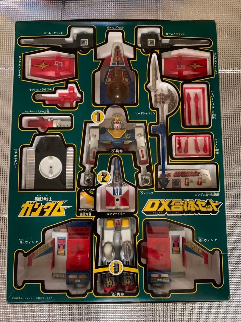 內容物以「合體」為核心概念,所有零件被如模型般整齊地排列在內盒中,並依照 GArmor 的結構配置。套件包含 G-Wing、G-Capsule、G-Caterpillar、鋼彈盾牌、光束武器、火箭炮、飛拳、各種彈藥與車輪等零件,甚至連 Core Fighter 的機首與尾翼都能拆卸。雖然貼紙多已因年代而缺失或使用過,但大部分本體零件依然保有昭和金屬玩具的質感與重量。