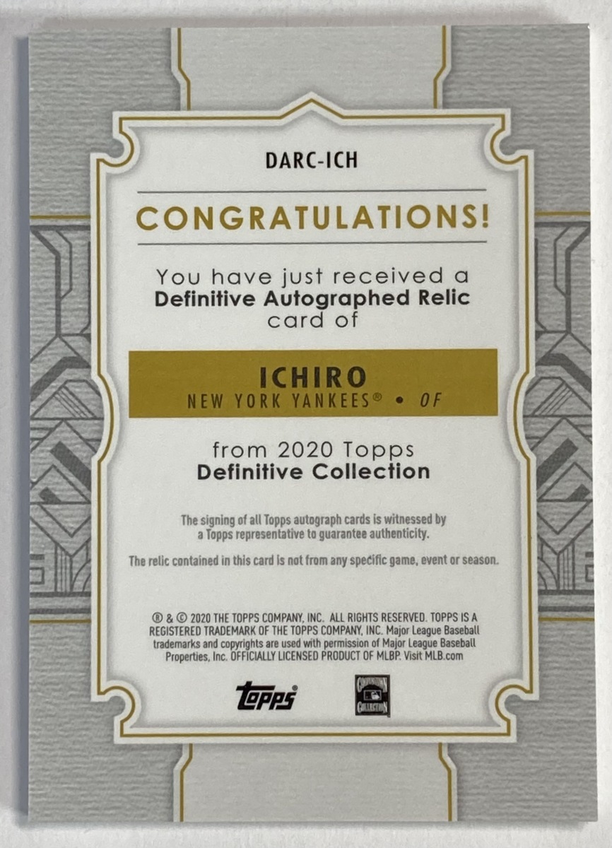 鈴木一朗 紐約洋基 簽名球衣卡 2020 Topps Definitive 全球限量15張