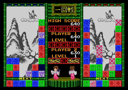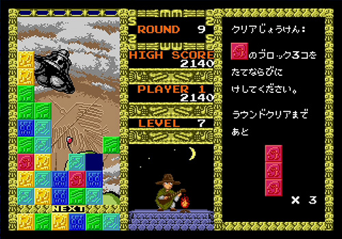 《Megapanel》是由Namco(當時以 Namcot 名義)於1990年在Sega Mega Drive推出的原創益智遊戲。雖然初登場時僅限日本地區,但多年來透過迷你主機與復刻合輯,逐漸被更多海外玩家認識。在玩法上,將十五拼圖般的滑動機制與落下式方塊遊戲的緊迫節奏結合起來,創造出一種當時少見、至今仍顯得獨特的遊戲結構。在縱向 11 格、橫向 6 格的狹長場地中,透過移動唯一的空格,讓面板左右滑動與重新排列,並在同色面板橫向或縱向達到三個以上時使其消除。消除後的上層面板會自然落下,可能進一步形成新的組合。而隨著時間推進,新的面板會以整排方式從底部升起,把整個盤面不斷往上推,直到某個面板或空格越過最頂端便宣告結束。雖無續關與密碼設計,但成功依賴的是即時反應與布局判斷的結合,讓遊戲在單純的規則中維持相當緊湊的挑戰性。